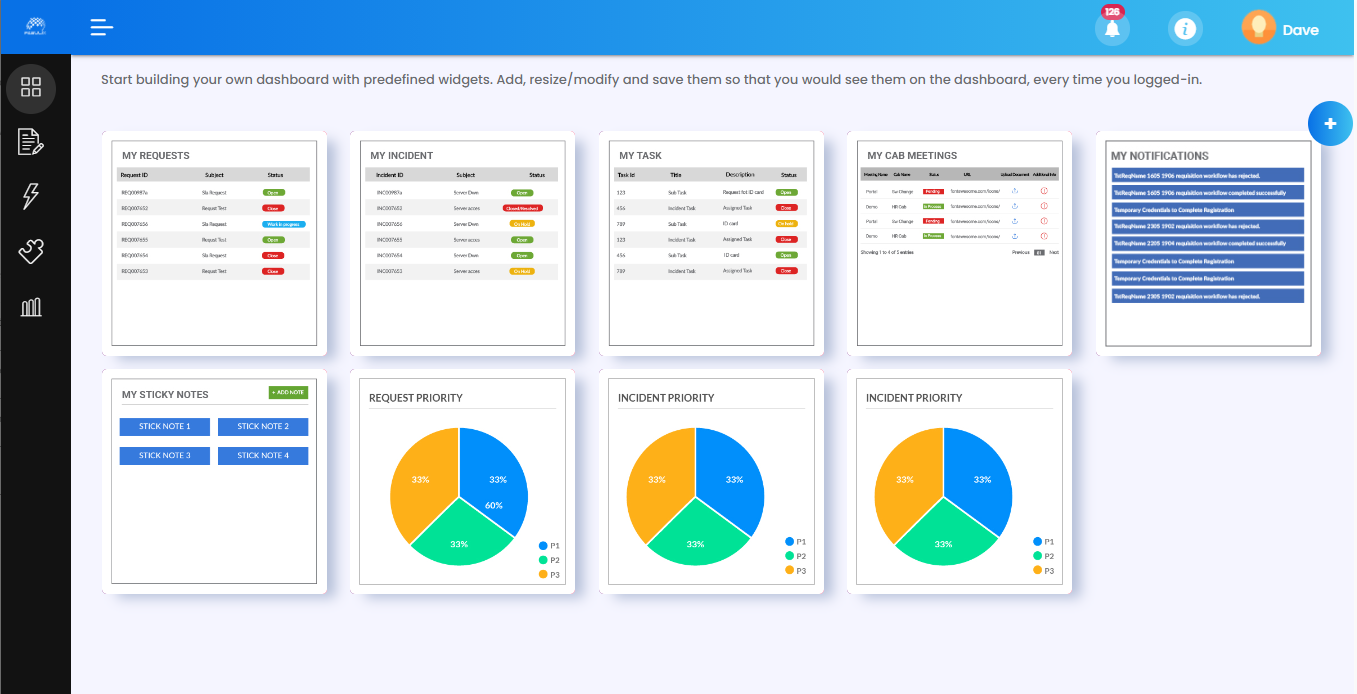 The application includes a self-service portal that provides capabilities for end users to search the knowledge base and look to solve their own issues, report incident tickets and request services.