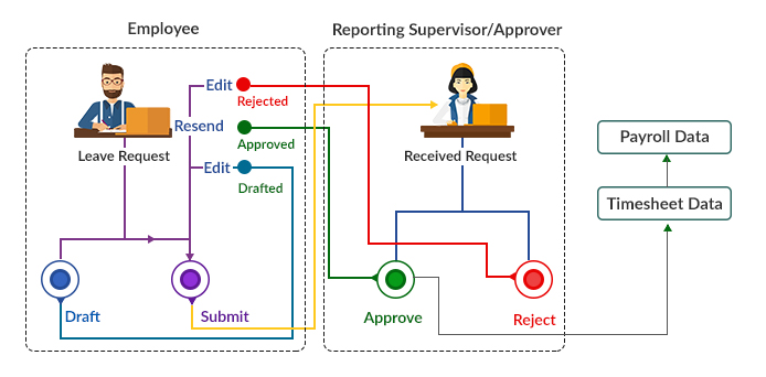 - The time-off data will be auto-populated in employee timesheets for the respective dates. And it will be considered for the payroll process.