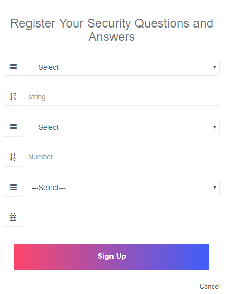 a)Enter login credentials that are provided by your manager, i.e., username and password and domain name in corresponding fields and then click Sign In. b) Select a question and enter an answer of your choice for all three questions and then click Save to register images that can be retrieved while resetting the password through Forgot Password option. c) Select the image that you want to set as security image (to be used when every time you sign to the portal) and then click Save. |
